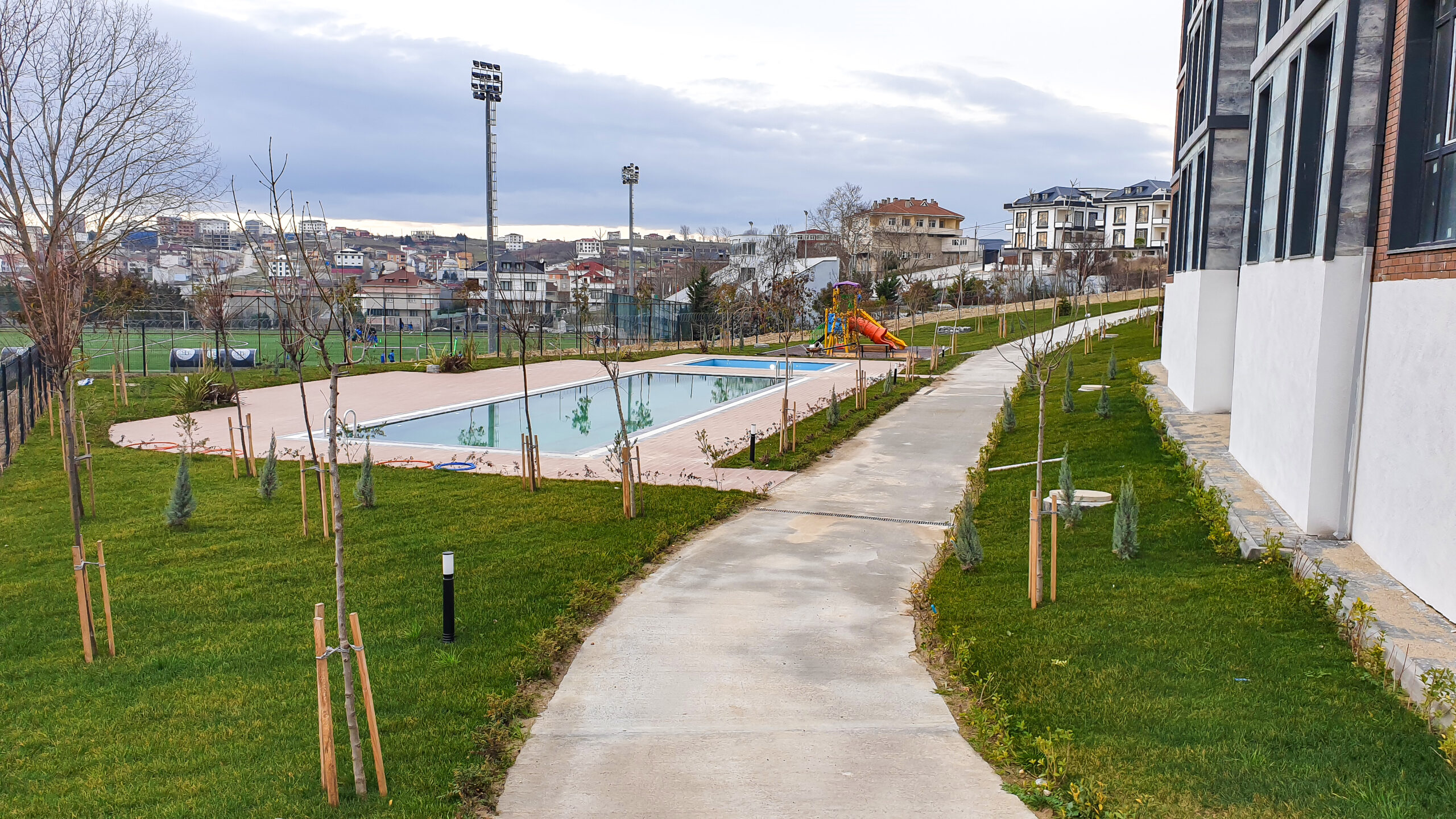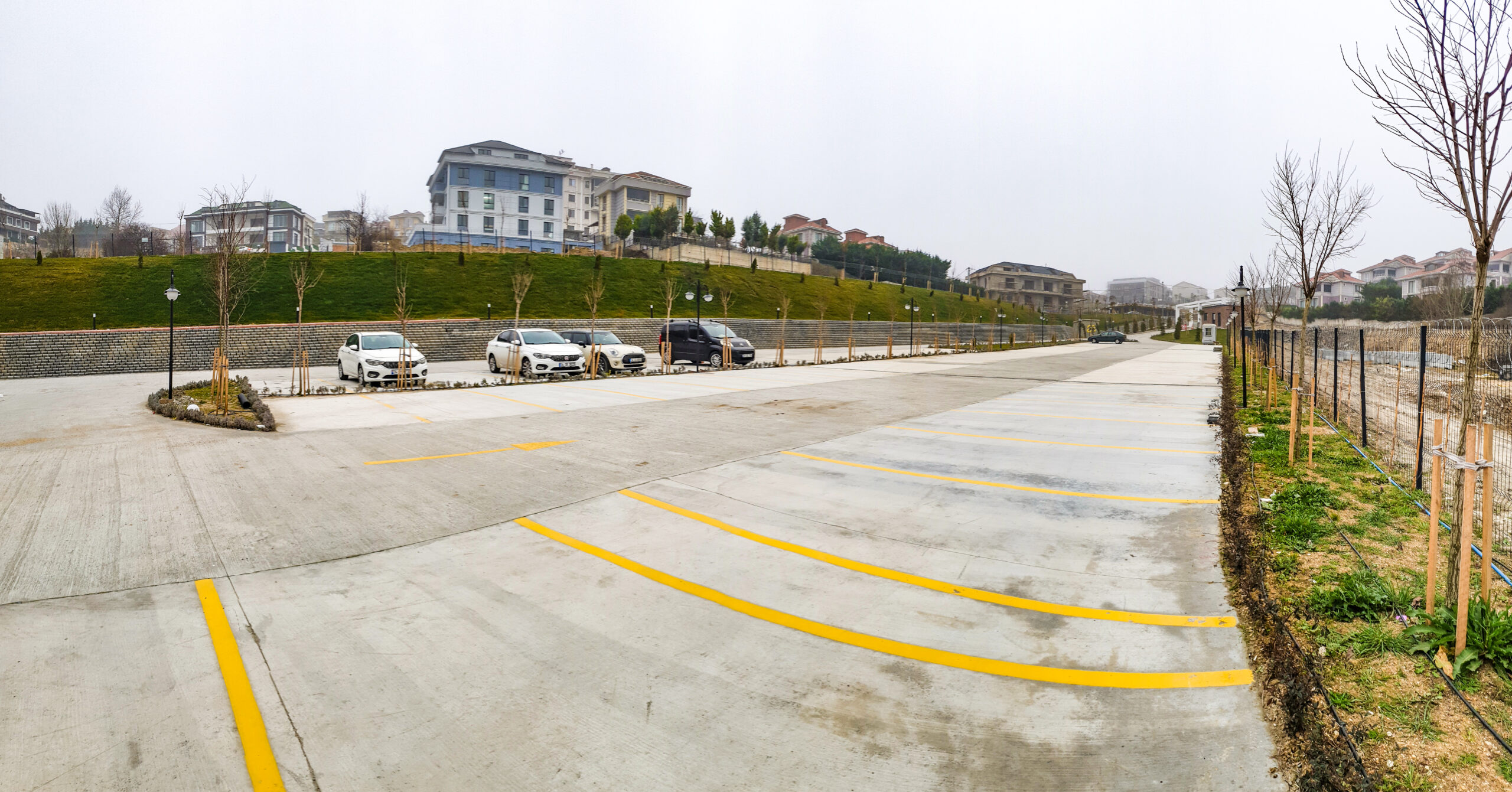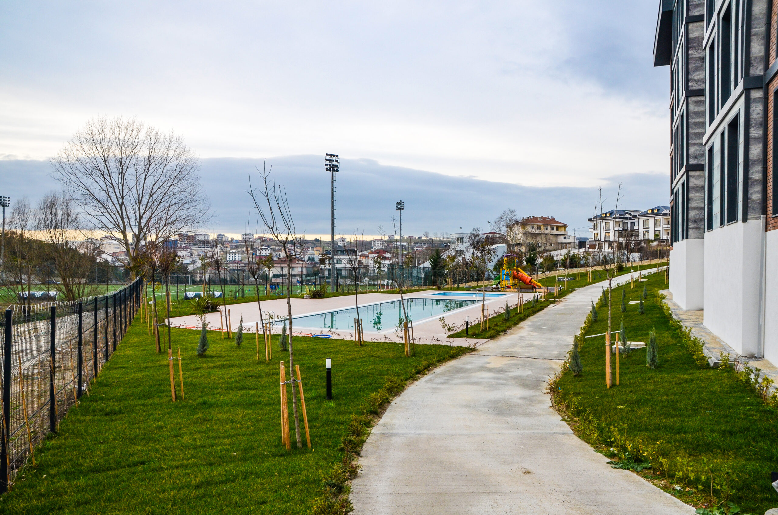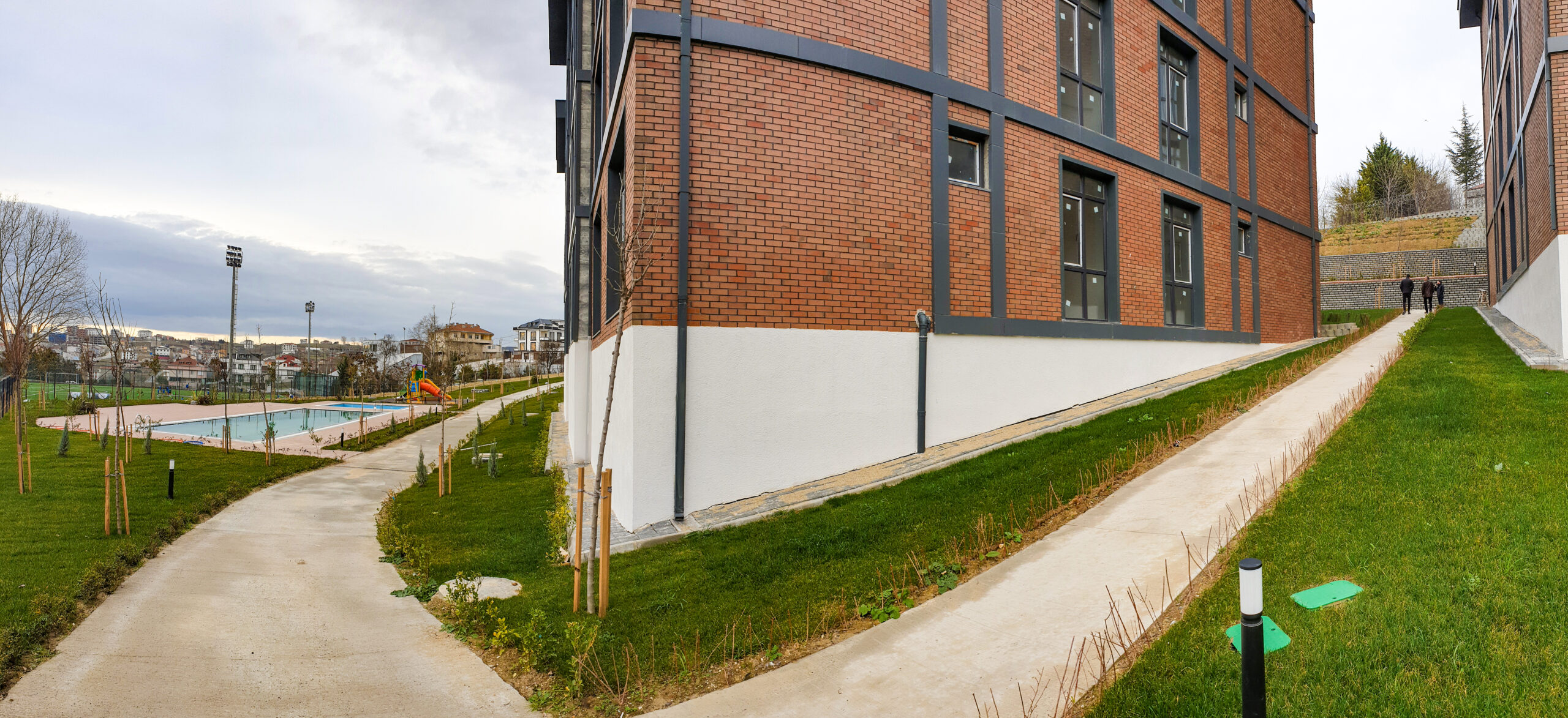 Profesyonel mimari ile tasarlanmış geniş yeşil alanlar.